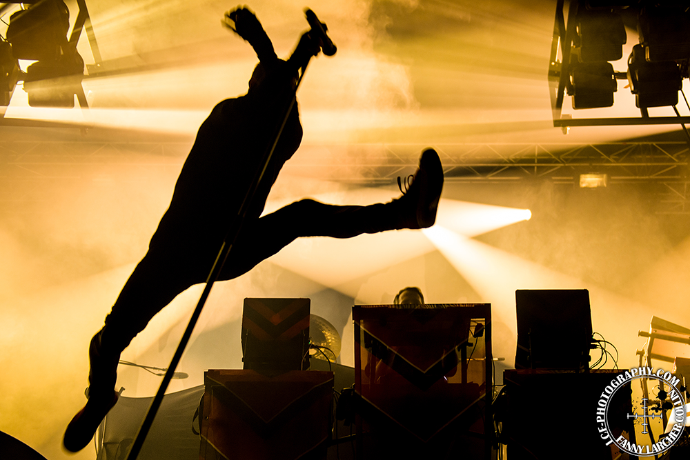 Une fois passé l’impression de plateau rétréci par tous ces accessoires et rampes de lumières, il est temps de s’attacher à la musique. Dès les premiers titres, les Américains annoncent la couleur : le concert sera calme et posé. Pas de cris et rythmes effrénés façon neo-metal, ils nous proposent une set-list épurée, très mélodique et ambiante. C’est un peu déconcertant de prime abord mais particulièrement adapté au lieu et au public luxembourgeois connu pour être faiblement expressif !