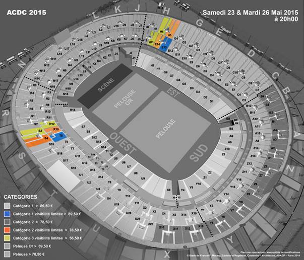 Seconde nouvelle : l’implantation de la scène d’AC/DC dans le Stade de France nous réserve une belle surprise : de nouveaux sièges à visibilité réduite sont désormais ouverts à la vente sur les deux séances.
