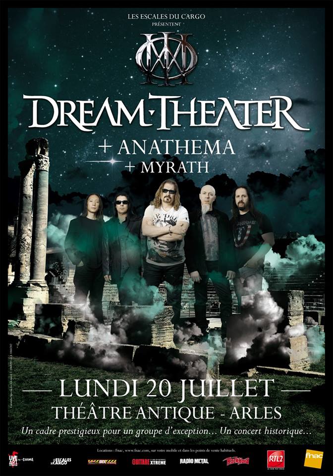 Comme annoncé le 3 avril dernier, DREAM THEATER se produira au Théatre Antique d'Arles pour un concert exceptionnel et jamais vu auparavant. Le nom des premières parties était resté secret jusqu'à présent, mais c'est désormais officiel. ANATHEMA et MYRATH seront aux côtés du groupe pour ce concert qui restera dans les mémoires.