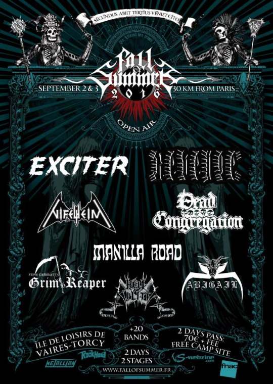 L’équipe du Fall of Summer Festival est fière de vous annoncer les premiers noms de son affiche 2016, qui se déroulera les 2 et 3 septembre, parmi lesquels deux groupes pionniers du metal outre-atlantique : les Américains MANILLA ROAD ainsi que les Canadiens EXCITER, n’ayant pas joué en France depuis plus de 30 ans.