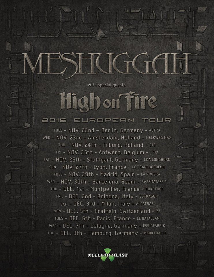 Dans la foulée, MESHUGGAH donnera trois concerts en France avec HIGH ON FIRE. (Base Productions)