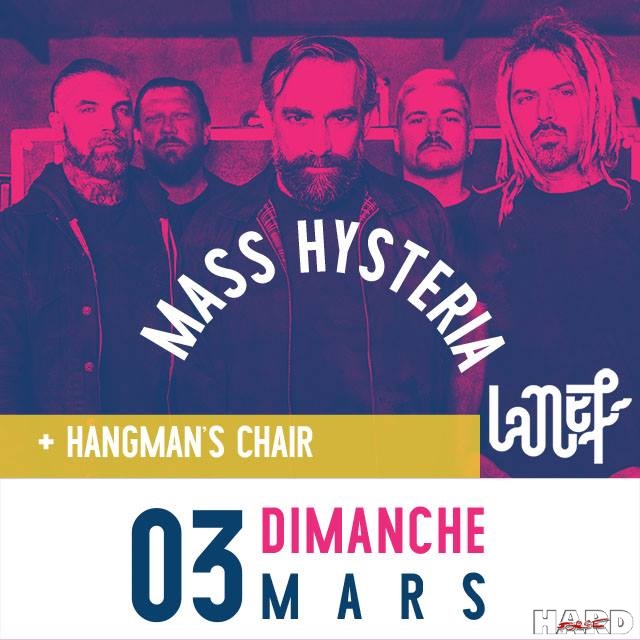 MASS HYSTERIA fera une halte à La Nef d'Angoulême sur sa tournée, le dimanche 3 mars 2019 avec dans ses bagages, le groupe HANGMAN'S CHAIR.