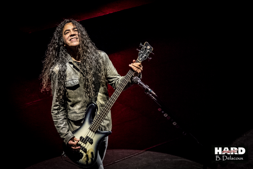Le groupe alterne avec intelligence des moments de gros rock bien burné et de poésie pure, communiquant et communiant avec le public, avec parcimonie mais subtilité. Ce qu’il se passe ce soir est de l’ordre de la magie et du sublime, comme on n’en voit que très rarement. "Stone" est l’occasion pour Jerry Cantrell de faire bouger l’Olympia en exhortant les fans à faire le plus de bruit possible, ce qui sera bien entendu suivi à lettre. Repris par Jerry Cantrell après un drôle de faux départ de Sean Kinney, complètement à contre-temps, – ce qui permet d'ailleurs au public de constater que sous ses dehors parfois distant, ALICE IN CHAINS est un groupe plein d’humour – le batteur nous assène la puissante "Red Giant" de main de maître pour enchaîner sur l’excellente "We Die Young".