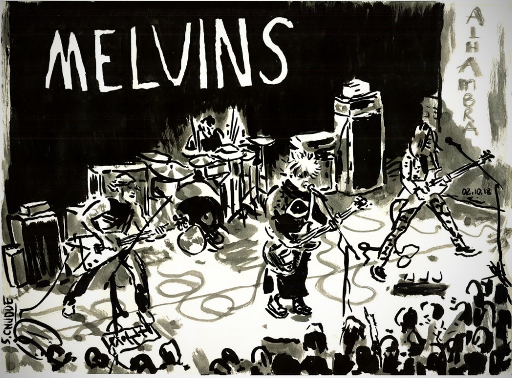 J'aurais adoré dessiner AC/DC au Pavillon de Paris en décembre 79, une petite salle où j'aurais probablement pu les croquer d'assez près. Mais je n'avais que 6 jours, haha ! Plus sérieusement, je ne sais pas trop. J'aime bien découvrir des truc nouveaux, être surpris. Je dirais Jodie Faster, parce que ce nom me fait bien marrer et que j'en entends parler depuis longtemps sans avoir eu jamais l'occasion de les voir. Une chose que j'aimerais faire, si l'occasion se présentait, serait de suivre un groupe en tournée, de faire une sorte de reportage dessiné, pas seulement des concerts mais aussi de la route, des lieux, des chargements/déchargements du van, de tous les moments off. Enfin, j'en aurais peut-être marre au bout de trois jours !