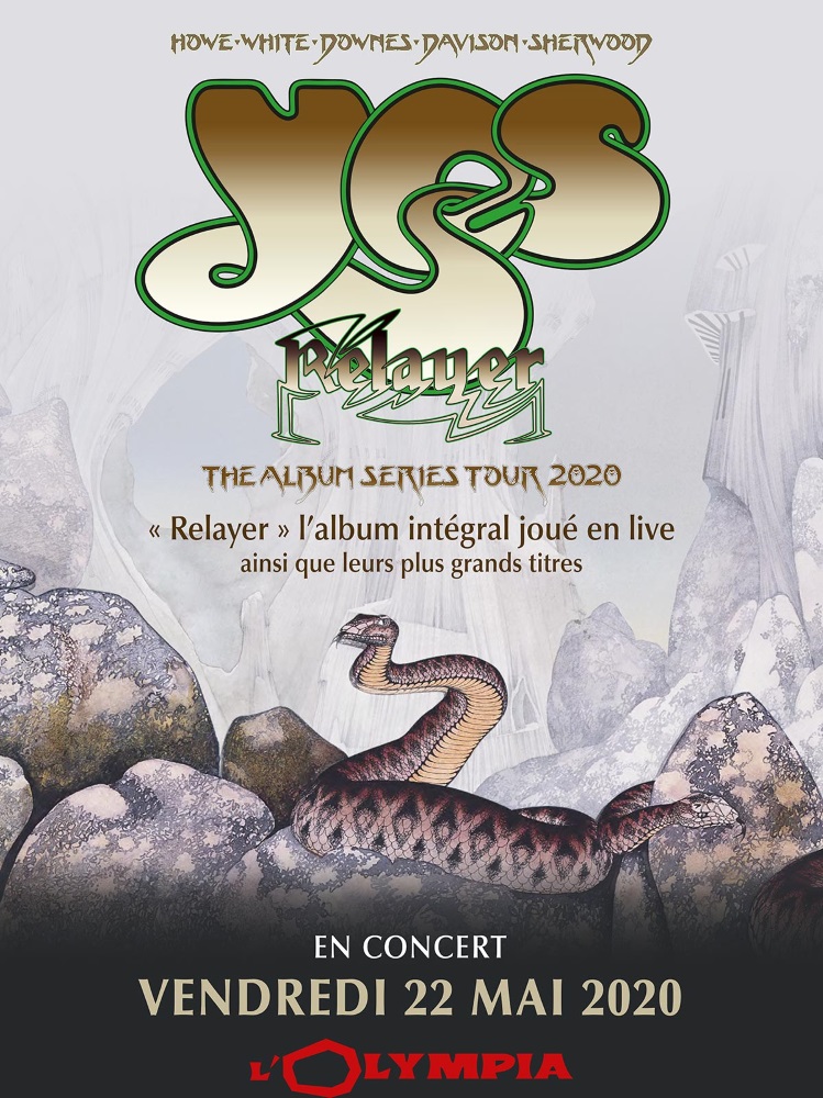 "The Album Series Tour 2020" suit "#YES50", la tournée anniversaire de 2018, conserve la même formation : Steve Howe (guitare), Alan White (batterie), Geoff Downes (claviers), Billy Sherwood (basse et chœurs), Jon Davison (chant) et Jay Schellen (batterie additionnelle et percussions) et reprendra l’intégralité de l’album « Relayer » (1974) ainsi que d’autres classiques de YES le 22 mai 2020 à l'Olympia.