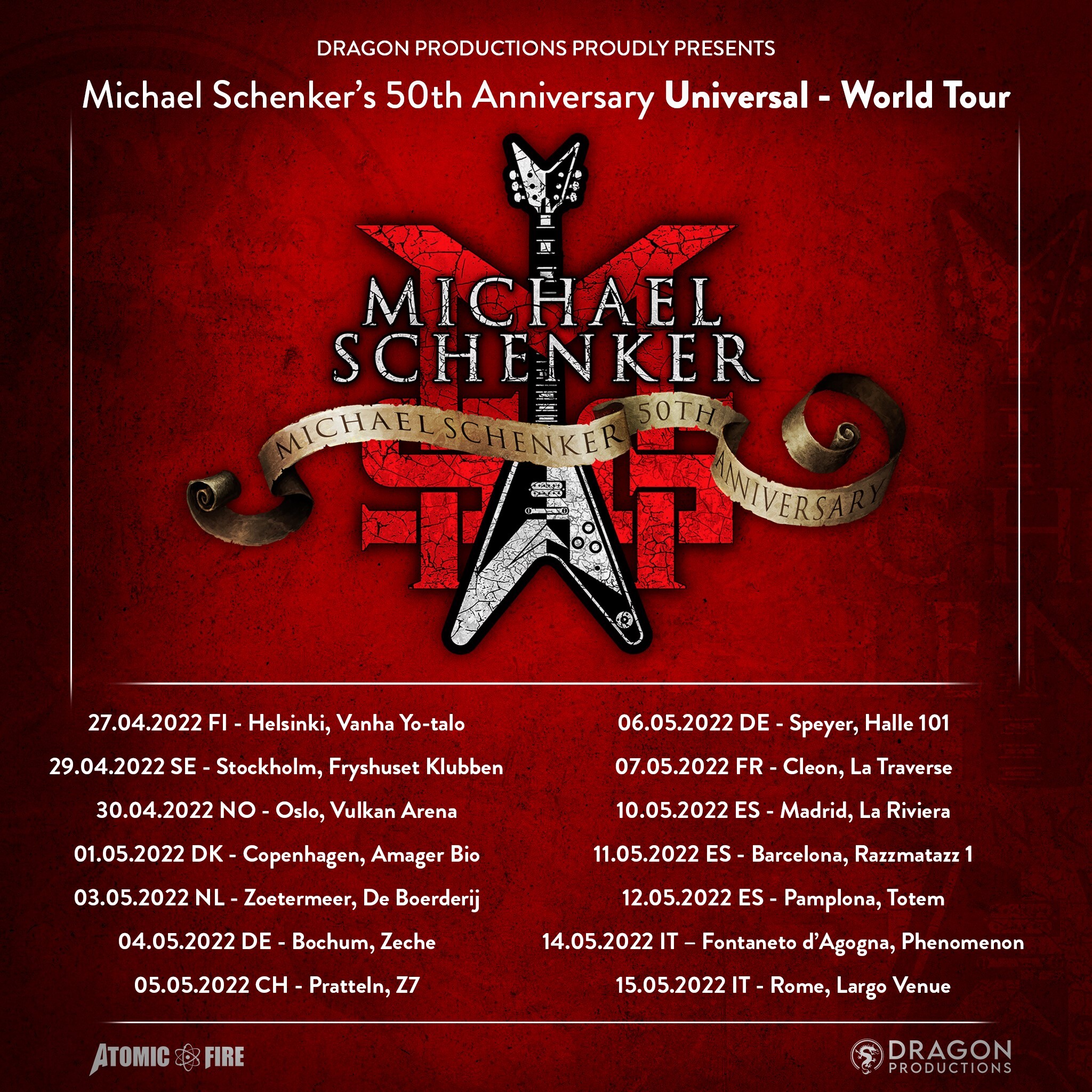 Peu de guitaristes sur cette planète ont eu une influence aussi durable sur autant de musiciens de renom que Michael Schenker. Avec son style d'une fluidité exceptionnelle, sa richesse inépuisable d'idées et son sens instinctif des riffs et des mélodies, Michael Schenker est une légende vivante qui, malgré son histoire longue et distinguée, impressionne toujours par son énergie et son dynamisme ininterrompus. Le six-cordiste originaire de Sarstedt, près de Hanovre, a commencé sa carrière internationale au début des années 70 avec SCORPIONS, a atteint la gloire mondiale après avoir rejoint le groupe britannique U.F.O. et a ensuite poursuivi sans interruption son exceptionnelle histoire au succès mondial sous son propre nom, ainsi qu'avec des groupes tels que MICHAEL SCHENKER GROUP (MSG), TEMPLE OF ROCK et MICHAEL SCHENKER FEST. Schenker et sa carrière, qui s'étend sur plus de cinquante ans, sont des exceptions absolues dans l'industrie musicale, qui est par ailleurs éphémère...