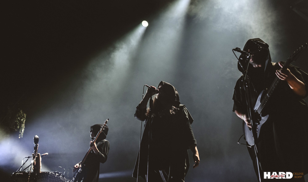 Leur mélange de gospel, black, metal extrême, moments plus progressifs ou techniques (rappelons à cette occasion qu’ils avaient notamment fait la première partie de MESHUGGAH à l’Olympia) est particulièrement bien dosé et leur est vraiment propre. Côté scénographie, comme d’habitude, on mise sur le sobre et l'efficacité. Sans fioritures, pas vraiment de spectaculaires costumes de scène ou de maquillage, si ce n’est que tous sont de noir vêtus avec une capuche en début de concert. Tout est dans le jeu de lumières en parfaite adéquation avec la musique et leur grand sceau en fond de scène.