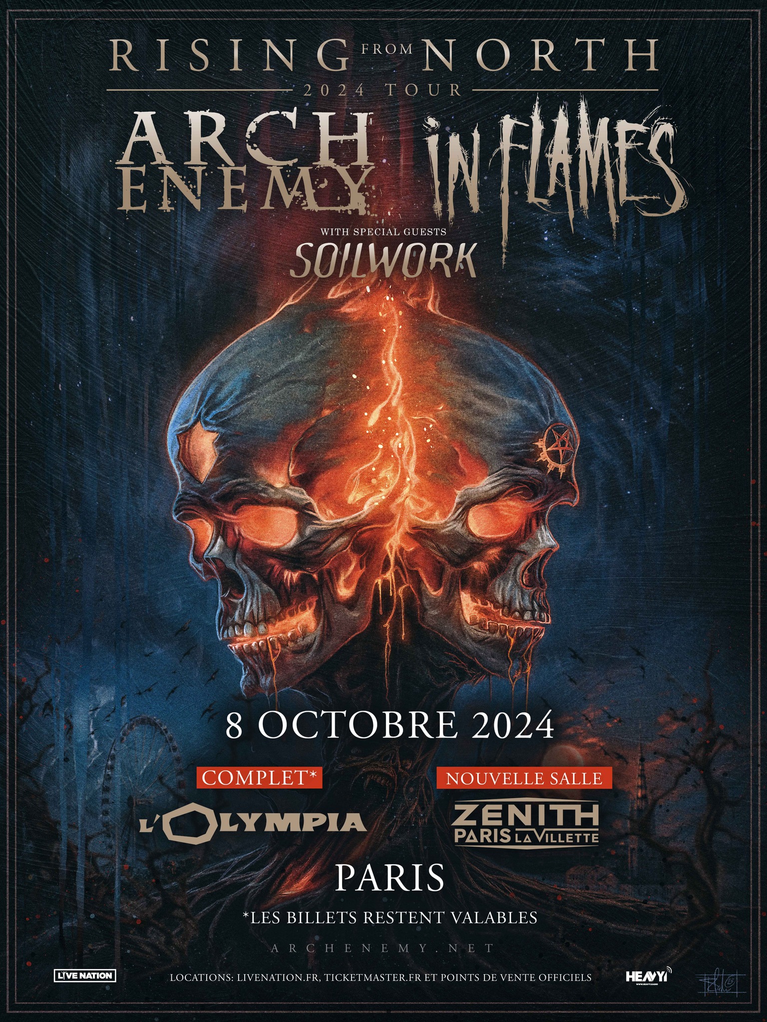 ARCH ENEMY a débuté sa tournée ''Rising From The North'' aux côtés d'IN FLAMES et de l'invité spécial SOILWORK le 3 octobre à Glasgow. Une tournée européenne qui se déroule dans 25 villes entre octobre et début novembre dont une le 8 octobre au Zénith de Paris