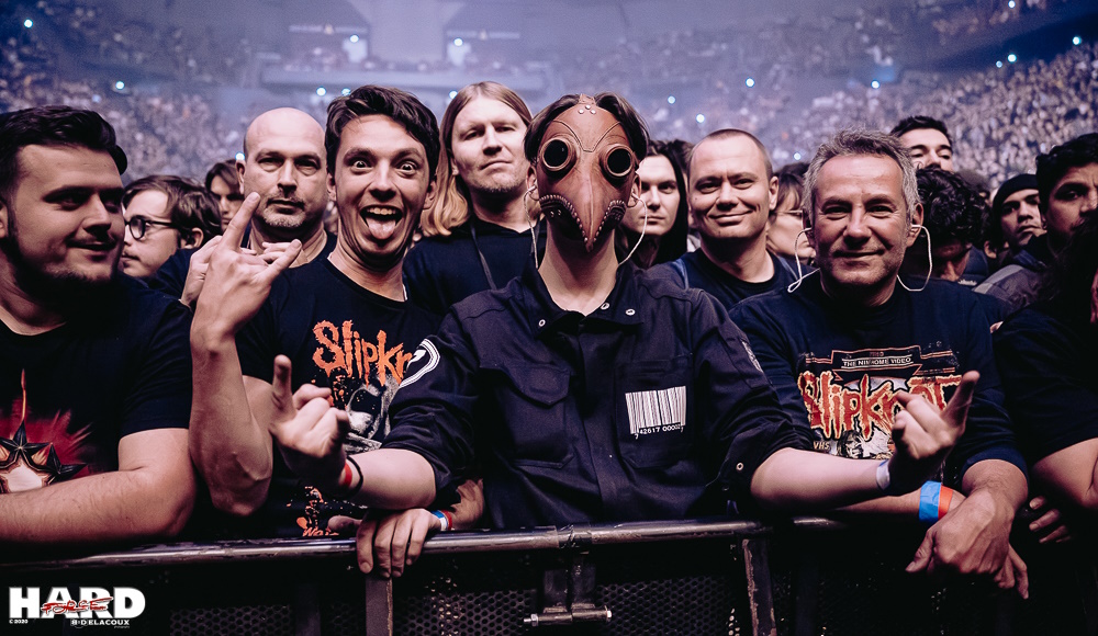 Or avec cette tournée ''Here Comes The Pain'', l’exercice est quelque peu différent : on savait bien au préalable que cet événement très spécial était strictement consacré à la célébration du premier album « Slipknot » paru en juin 1999, et dont on allait fêter tous ensemble le 25e anniversaire au cours d’une série de dates exceptionnelles. Mais ça, déjà, certains ne l’avaient pas forcément intégré. « Here comes the pain », c’est ce sample (extrait d’un dialogue d’Al Pacino dans Carlito’s Way – ou L’Impasse en français, bien que « v’là la douleur », ça pète moins) qui donne toute sa dynamique au premier véritable morceau de l’album, ''(sic)'', déclenchant ainsi toute la frénésie de l’expérience – ici en live. Donc, en substance, le concert du soir allait être entièrement dédié à cet anniversaire – avec par conséquent l’album joué en intégralité. « Oui, mais avec ce disque, c’est à peine une petite heure de musique pour environ une quinzaine de chansons ». C’est un fait, indéniable : mais voici quels étaient les termes de nos hôtes, d’autant que Corey nous l’a bien rappelé en début de soirée : tonight, aucune musique ultérieure à 1999 ne sera jouée – voilà le concept, strict et simple. Rappelons que pour l’heure, le groupe n’a rien à vendre, et n’a officiellement pas encore annoncé chez quelle maison de disques il serait bientôt hébergé : le contrat avec Roadrunner n’a pas été renouvelé après un quart de siècle de collaboration, et la tournée ''The End, So Far'' s’est bel et bien achevée depuis un moment. Entre août et décembre 2024, le groupe de l’Iowa a décidé de s’offrir une parenthèse nostalgique non dénuée de profits, tant la commémoration fonctionne auprès des fans : il y a ceux qui y étaient, comme au fameux Élysée Montmartre du 16 décembre 1999, et ceux qui auraient rêvé avoir vécu cette période incroyable de découverte-choc, mais qui ont grandi avec un groupe déjà installé, en étant dorénavant une énorme machine, tant culturelle que marketing.