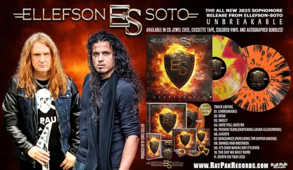 Le bassiste et ex-MEGADETH David Ellefson et le célèbre chanteur Jeff Scott Soto ont à nouveau uni leur talent et s'apprêtent à sortir un deuxième album intitulé « Unbreakable », le 15 août chez Rat Pak Records.