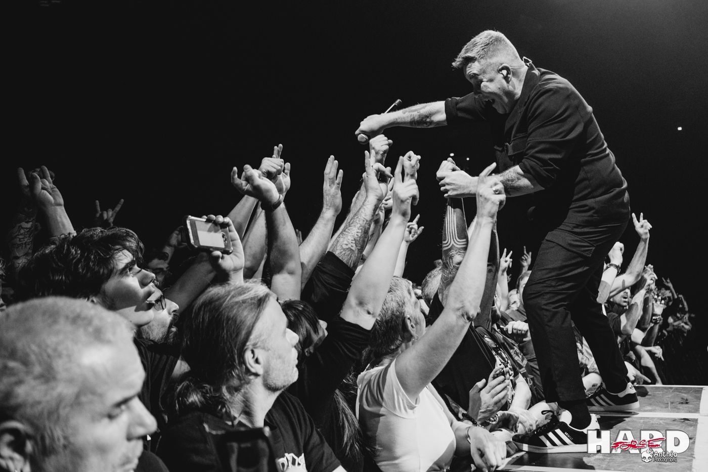 Presque trois ans après avoir rempli le Zénith de Paris, c'est avec un nouveau disque à défendre que les DROPKICK MURPHYS entrent en scène à l'Adidas Arena, et ils ne prennent pas de pincettes ! Pour cette ultime date de la tournée « For The People » en Europe, Ken Casey et sa bande nous gratifient d'un enchaînement old-school, allant de "Hang 'Em High" à "Boys On The Dock" en passant par le hit "The State Of Massachussets" et une version accélérée de "Going Out In Style", déchaînant totalement le public parisien ! Ken Casey se jette dans la foule comme un boxeur dans les cordes, faisant chanter les fans à l'unisson et déployant une énergie incroyable après près de 30 ans de carrière, et, galvanisés, ces derniers hurlent "First Class Loser", premier extrait de « For The People » interprété ce soir, avec en prime des images de Donald Trump, à qui la chanson est dédiée, se ridiculisant sans cesse. C'est désormais certain : les DROPKICK MURPHYS ne feront pas de quartier ce soir !