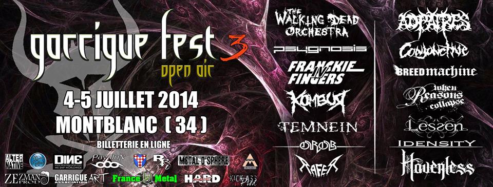 L'association Garrigue Art organise la troisième édition de son festival associatif spécialisé dans les musiques extrêmes ! Comme son nom l'indique le Garrigue Fest a lieu en pleine nature en terrain privé près de Montblanc (34290) et met un point d'honneur au respect de l'environnement. Verre interdit sur la zone de concerts et feu interdit sur tout le site.