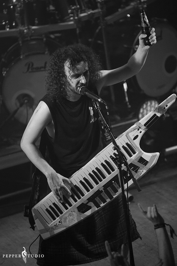 Le concert se terminera sur « Captain Morgan’s Revenge » et « Rum », avec une course de slams entre Christopher Bowes (qui heureusement avait pensé à mettre quelque chose en dessous de son kilt) et Jimi Maltais (chanteur de CRIMSON SHADOWS).