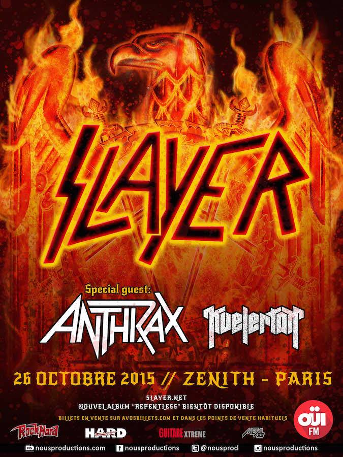 SLAYER sera en concert à Paris au Zénith le 26 octobre avec ANTHRAX et KVERLERTAK.