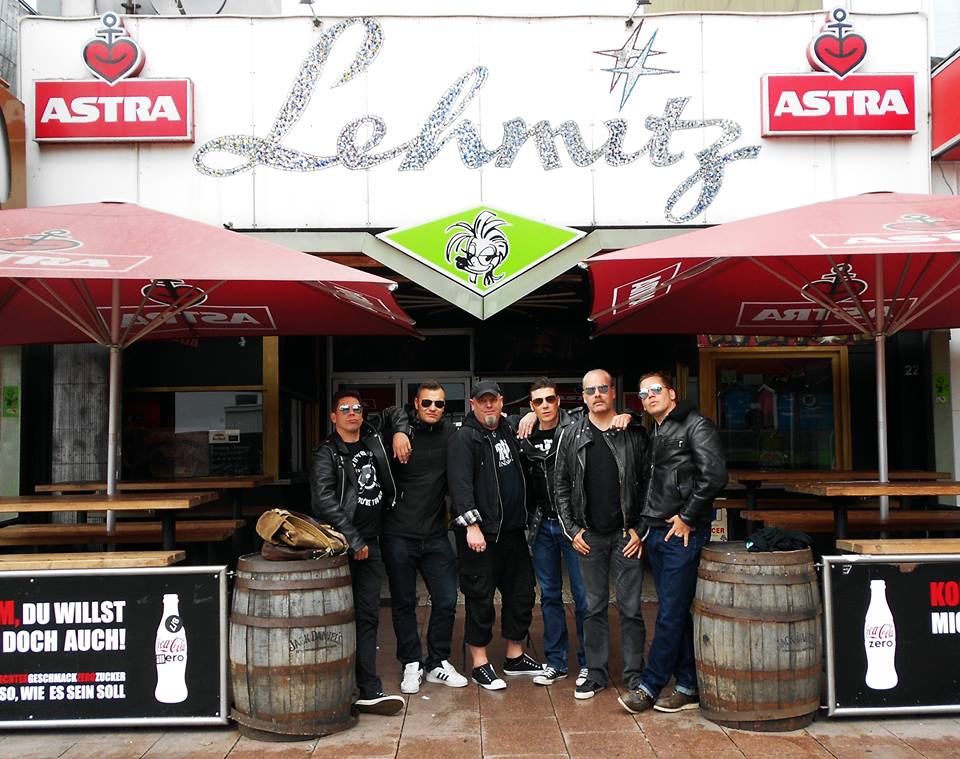 Le groupe a posé sur la photo suivante devant le bar le Lehmitz avec Georg Schröder, de SPV, pour imager cette signature. Pour la petite histoire, le groupe a précédemment joué dans ce bar, avec des débuts difficile, avec le responsable qui leur a demandé de jouer moins fort, et en 3 sets, devant 15 personnes… pour finalement être réembauchés les jours suivants contre des packs de bière et un bar rempli !