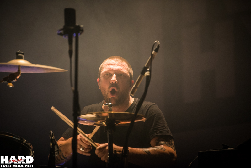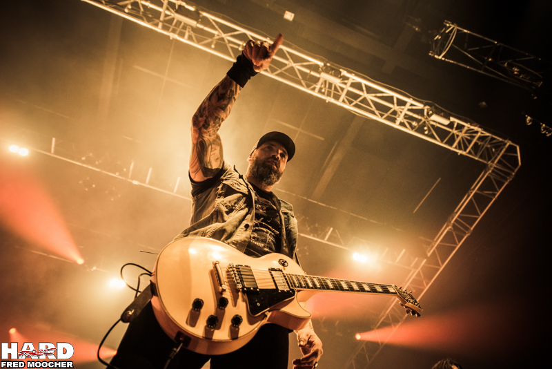 Intro. MASS HYSTERIA arrive sur scène. Frissons assurés dès les premiers accords de guitare. “Tout Doit Disparaître" ouvre le concert et c’est le feu. Plus fort que tout. Le groupe est remonté à bloc et donne d’entrée la tonalité de la soirée : PSYCHOSTIMULANTE ! Enchainement sur "World On Fire". Que dire si ce n’est que c'est la traduction musicale de l’actualité. Le public chante, bouge, headbangue, slamme… L’unité du groupe avec les personnes présentes est hallucinante. Les MASS HYSTERIA donnent tout. D’ailleurs, après le troisième titre, Mouss, en nage, remercie le public et ne sait pas comment ils seront à la fin du concert. Premier titre de leur dernier album « Matière Noire », "Chien de la Casse" dégomme tout sur son passage. Un effet métallique direct sur de la poésie urbaine. Place à un autre titre de l’album de l’année 2015, "Notre Complot", Yann perché sur scène haranguant le public à la manière d’un James Hetfield de METALLICA, Mouss sous amphétamine naturelle cérébrale distillant ses mots, Raphaël et Vincent dans le rôle de tank rythmique accompagnés de Fred Duquesne à la guitare rythmique millimétrique et à la prestance scénique parfaite.