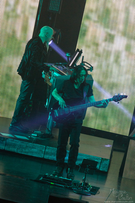 Côté scène, tout l’espace est laissé aux différents écrans géants (quasiment aucun matos sur scène, amusant de voir Petrucci afficher seulement deux cabinets 4x12 et deux têtes Mesa Boogie et se débarrasser ainsi des murs d’amplis dont ne sort jamais la moindre note) qui vont donc projeter l’histoire de l’album tout au long du concert, au cours d’animations mêlant univers de science-fiction et d’heroic fantasy, pour des résultats variables. On a du très bon avec notamment les animations des Nomacs dont les interludes prennent toute leur dimension en concert, jusqu’à certaines vidéos assez grotesques, mais quel fan de DREAM THEATER peut s’offusquer d’un brin de mauvais goût, péché mignon du groupe depuis ses débuts et probablement jamais aussi peu présent que sur « The Astonishing », un disque où même Jordan Rudess est sobre, c’est dire ?! En effet, bien que résolument grandiloquent, le concept est illustré par une musique globalement en retenue, à dominante calme où les inévitables passages “techniques pour techniques” ne sont pas forcément de la partie.