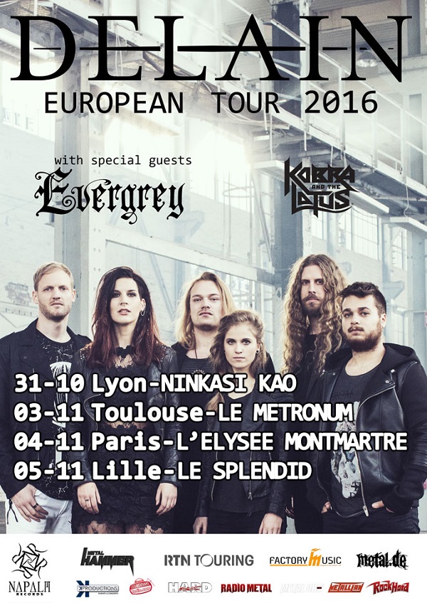 DELAIN sera accompagné sur cette tournée par EVERGREY et KOBRA AND THE LOTUS. Les dates sont les suivantes :
