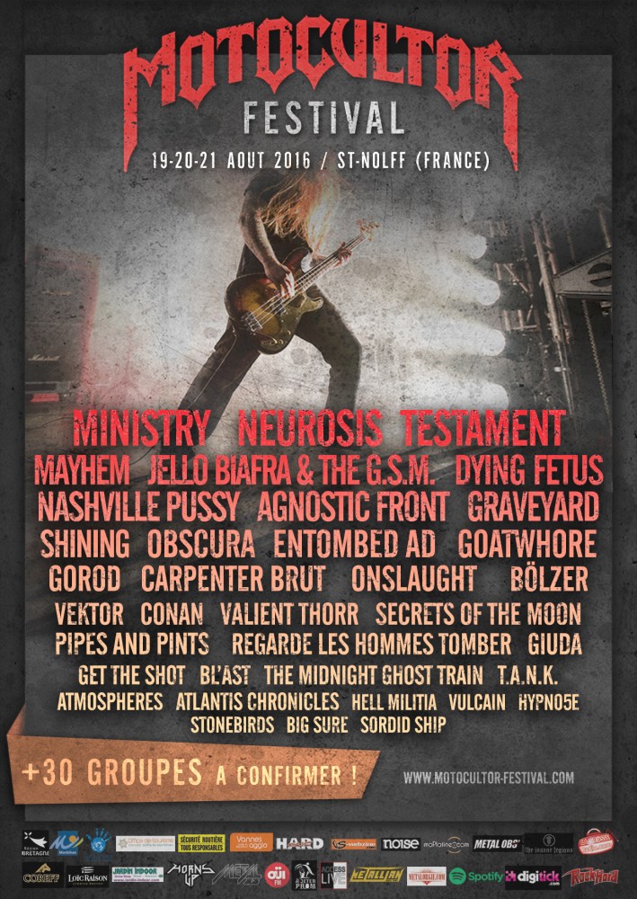 Le Motocultor Open Air est particulièrement ravi de vous annoncer que MINISTRY / MAYHEM / VALIENT THORR / BL’AST / BIG SURE et SORDID SHIP rejoignent l'affiche du festival qui se déroulera les 19-20 et 21 août 2016 à St Nolff.