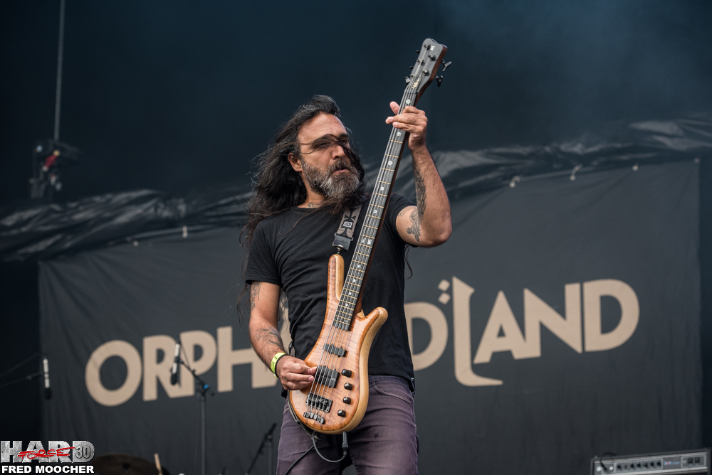 Sans transition, on se déplace de quelques mètres pour accueillir maintenant sur la Mainstage 1 les Israéliens ORPHANED LAND, groupe symbolisant plus que tout la paix, l’unité, le rassemblement, la tolérance, la fraternité… Valeurs tellement importantes qu’aujourd’hui seule la musique (et pas la religion ni la politique…) semble en mesure d’apporter. Déjà plus de vingt ans que je les suis (depuis leurs débuts chez Holy Records) et je ne me lasserai jamais de les voir en concert, malgré le départ de Yossi Sassi. Des drapeaux de plusieurs pays flottent parmi le public, dont un aux couleurs blanches et bleues de leur pays d’origine avec indiqué "Isra-HELL" (écrit avec le logo Hellfest) !