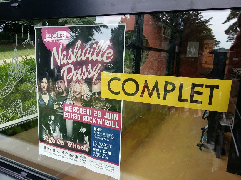 Les énormes tournées des Américains NASHVILLE PUSSY font toujours beaucoup d’étapes en France. Et hier soir, c’est en banlieue ouest à Saint-Germain-en-Laye que le quartet traînait ses santiags, à La Clef précisément, une salle peu connue des amateurs parisiens de hard ou de metal. Cependant, un certain nombre de formations connues et de tous genres s’y sont produites (NO ONE IS INNOCENT, LOFOFORA, FFF, LES WAMPAS, LUDWIG VON 88, I AM ou NTM, MANO NEGRA ou LES NEGRESSES VERTES pour n’en citer que quelques-unes), depuis sa création il y a 30 ans. Beau palmarès.