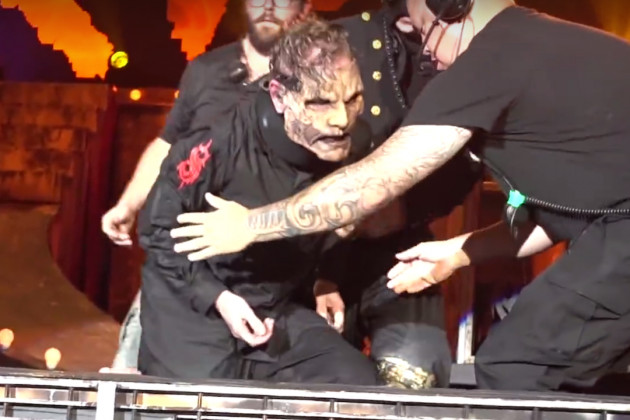 C’est pas la fête pour Corey Taylor ces derniers temps (à croire que Joey Jordison lui a lancé une malédiction…). Après avoir subi « une opération rachidienne imprévue » parce qu’il s’était cassé le cou qui a repoussé de quinze jours le lancement de la tournée US SLIPKNOT-MARILYN MANSON, le chanteur est tombé de scène à la fin du concert d’Atlanta. C'est le road-crew qui l'a aidé à se relever (péniblement) et à retourner backstage.
