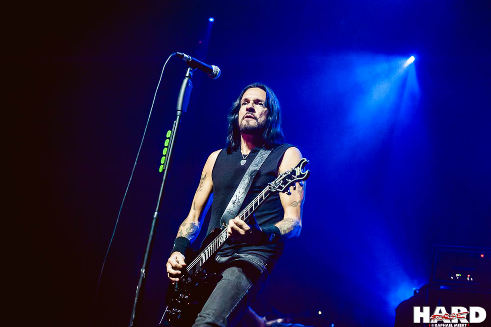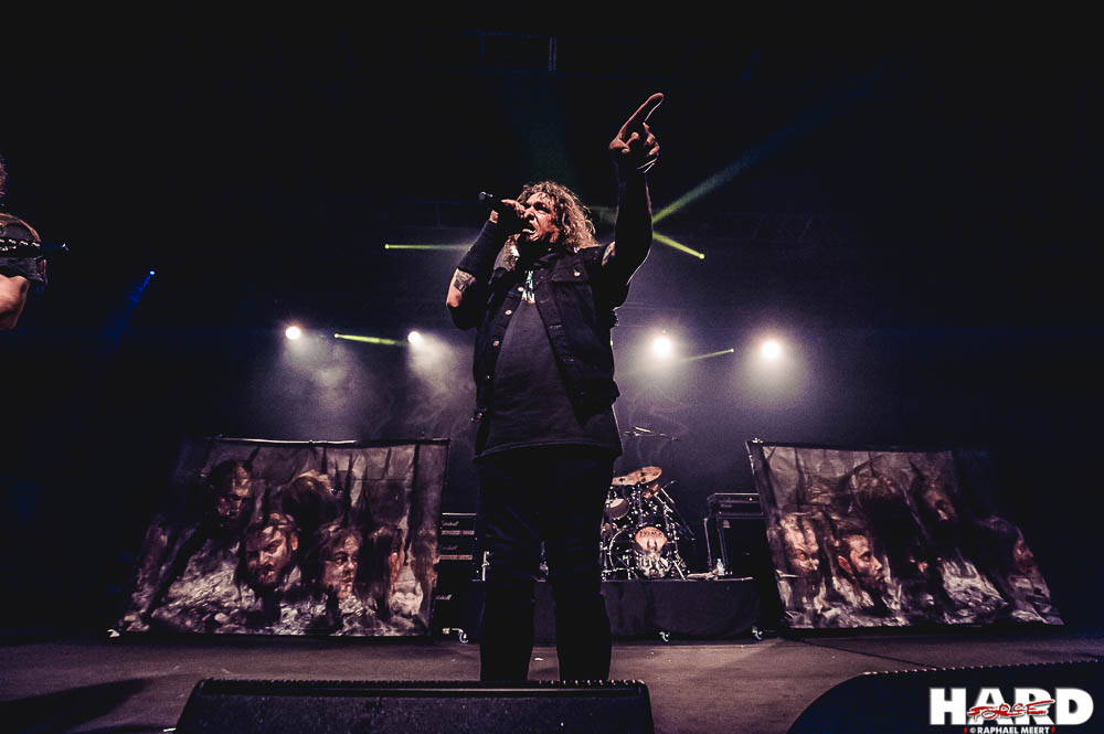 L'ambiance change du tout au tout quand EXODUS apparaît. Le batteur, en surplomb, se dresse pour haranguer la foule et, aussitôt, "The Ballad Of Leonard And Charles" électrise l'ambiance. « Can you feel the violence in the air ? » interroge Steve Souza, ravi d'être de retour aux affaires. Les Californiens, toujours jeunes après plus de 30 ans de carrière, ne permettent pas de douter de la réponse : ils alignent les classiques sans répit ("Pleasures Of The Flesh", "And Then There Were None", "Piranha", "Bonded By Blood"...) avec une conviction de débutants et une maîtrise de vétérans. Les soli de Kragen Lum, précis, se posent sur une rythmique efficace, mise en valeur par un son clair. Le chanteur se réjouit de la longévité du groupe et savoure de voir de "nouveaux visages". Les titres du dernier album ne déparent pas au milieu d'une set-list de haut niveau, dans laquelle brille le fabuleux "War Is My Shepherd". La salle vit intensément cette heure de folie thrash.