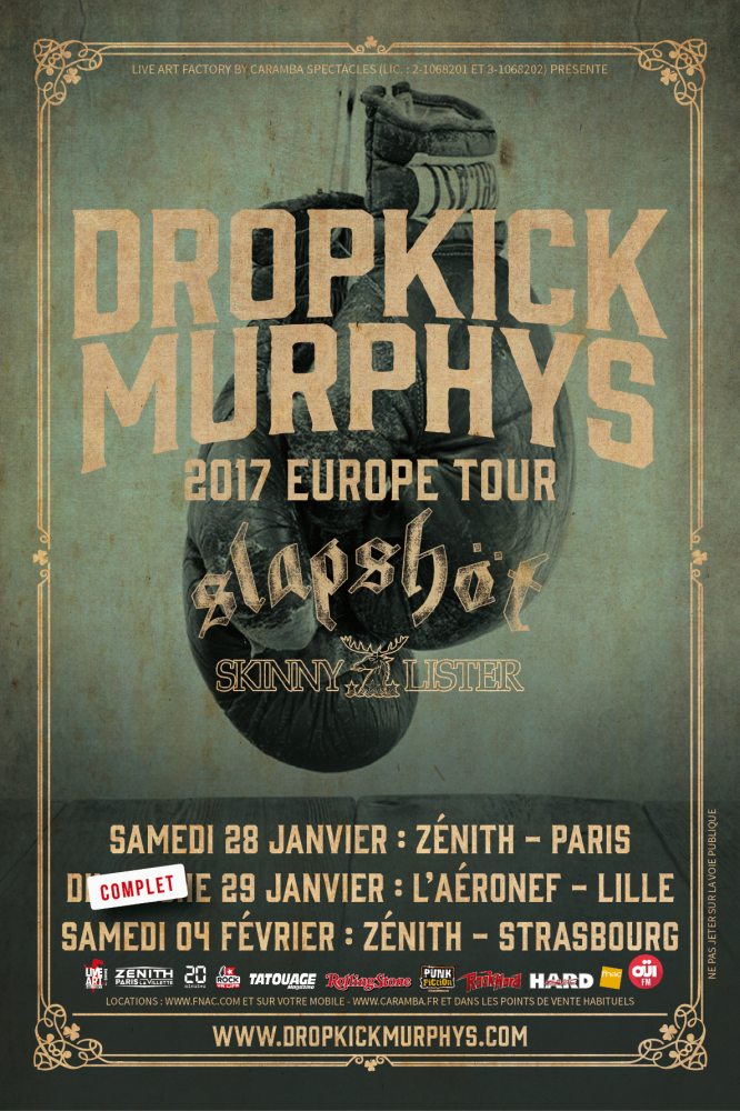 Retrouvez DROPKICK MURPHYS en concert : le 28 janvier à Paris (Zénith), le 29 à Lille (Aéronef - Complet) et le 4 février à Strasbourg (Zénith Europe) - Réservation : Live Art Factory