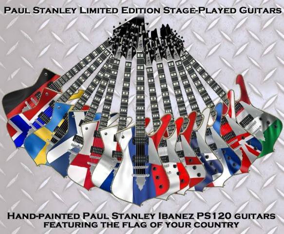 A l’occasion de la tournée européenne de KISS en mai, qui boudera la France, Paul Stanley a fait savoir qu’il mettra en vente deux de ses Ibanez PS120 sur chacune des dates. La première avec laquelle il aura déjà joué sur scène, la seconde qui n’aura jamais connu les feux de la rampe et les effets pyrotechniques mais toutes deux peintes à la main aux couleurs du drapeau du pays traversé. Intéressé ? Contactez kleroux67@gmail.com.