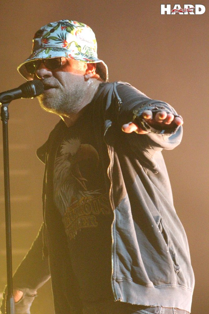 On ne peut rien reprocher au set de TRUST, le son est parfait, Bernie fait le show et les musiciens ne perdent pas la cadence qu’il impose. Même le tout jeune batteur, Christian Dupuy assure derrière ses fûts. En plus d’une prestation réussie, Bernie interagit avec le public. Il milite, s’engage et n’hésite pas à partager ses pensées. Alors il y a l’engagé Bernie avec, par exemple, en introduction à la chanson "F haine" un speech sans concession à propos des élections à venir. Le chanteur fera vibrer la salle avec la phrase « La haine est une blonde qui surfe sur la vague marine », coup de maître quand on connaît le score du FN en Vaucluse… Mais il y a aussi l’enragé Bernie qui prend à partie quelques personnes du public, que cela plaise ou non. Propos visiblement moins appréciés mais lorsque la musique reprend, il est entièrement pardonné. Toujours autant de dynamisme et de rage pour la fin du concert avec en clôture le tant attendu "Antisocial" que toute la salle chante à tue-tête et à l’unisson. Beau moment d’union et de partage.