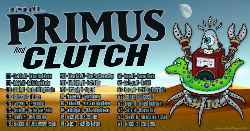 Pour les vacanciers fans du groupe se trouvant aux Etats-Unis, vous pourrez aller applaudir le groupe qui débutera une tournée de 24 dates le 17 juillet en compagnie de PRIMUS et fort à propos nommée « An Evening With CLUTCH & PRIMUS ».