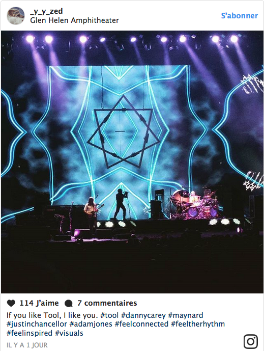Samedi soir, TOOL a donné un concert à San Bernardino, en Californie, devant plusieurs dizaines de milliers de spectateurs, en compagnie des MELVINS, CLUTCH, FANTÔMAS et PRIMUS. Les quatre hommes ont joué quinze titres, en comptant le solo de batterie de Danny Carey, avec de splendides images signées Alex Grey pour accompagner le trip aural de Maynard James Keenan & Cie, comme on peut le voir sous la set-list, après le bref extrait de “Descending”, un tout nouveau titre que l’on peut découvrir aussi.