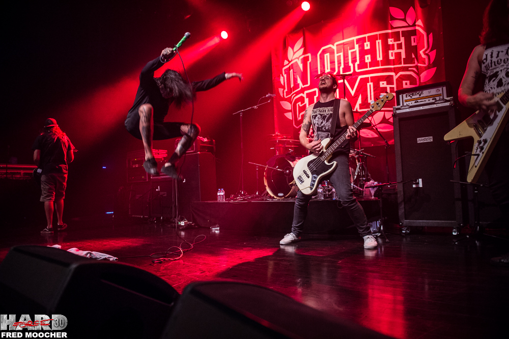 Le feu attisé par REAL DEAL se transforme en vrai brasier à l’arrivée de IN OTHER CLIMES. A la seconde où ils surgissent sur scène, ce n’est qu’un déchaînement absolu dans le public.