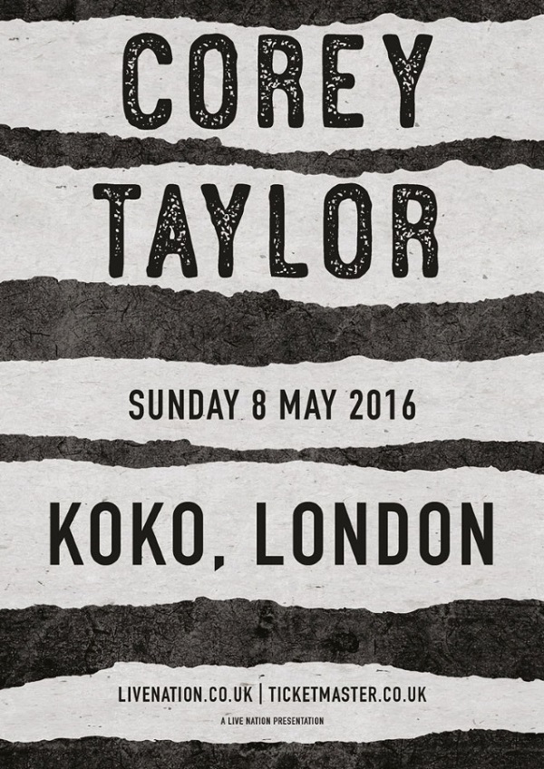 Le 8 mai 2016, Corey Taylor (SLIPKNOT, STONE SOUR) se produisait à Londres au club Koko en acoustique et en solo pour un concert sold-out et qui avait été enregistré. Vous pourrez retrouver cette performance sur le site officiel du chanteur, qui le mettra gratuitement en ligne le 18 décembre 2017. Le set était constitué de morceaux issus du répertoire de STONE SOUR, SLIPKNOT, mais aussi de reprises de groupes aussi divers que THE CURE, R.E.M., KISS ou EAGLES pour ne citer que ceux-là.