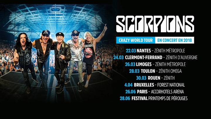 SCORPIONS, dans le cadre de sa prochaine tournée "Crazy World Tour", fera halte à Paris le 26 juin 2018. Une prévente exclusive aura lieu le mercredi 13 décembre à 10h et vous pouvez vous y inscrire en cliquant sur ce lien.