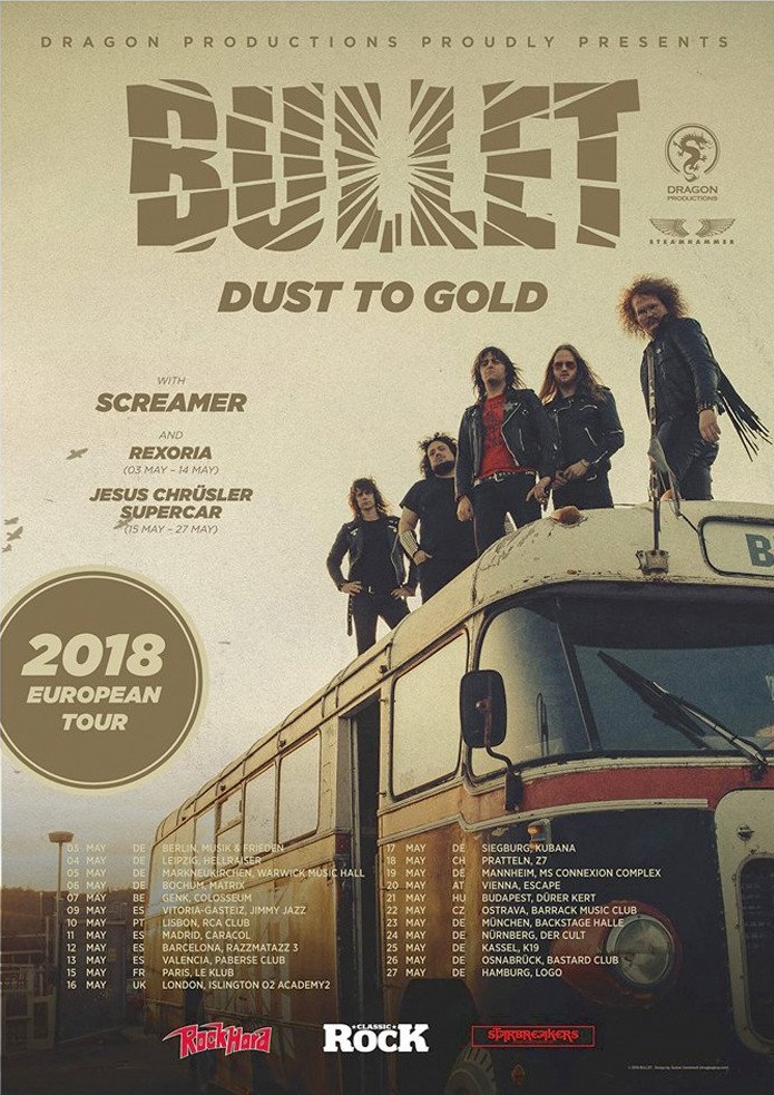 BULLET assurera la promotion de « Dust To Gold » avec une date le 15 mai à Paris - Le Klub. Toutes les dates européennes plus bas.