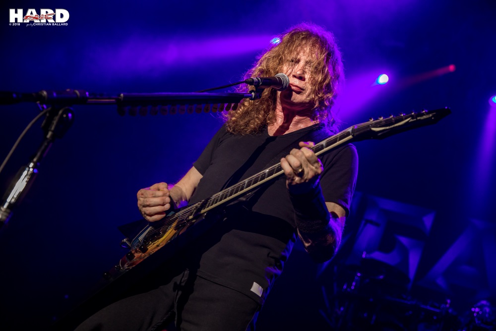 Dave nous sert le récent et très bon "The Threat Is Real". Mariage temporel réussi. Nous aurons droit à 19 morceaux célébrant la longue carrière du groupe. « Rust In Peace » et « Peace Sells… But Who’s Buying ? » sont très largement représentés avec pas moins de 10 titres, plus de la moitié de la set-list. Les fans en ont donc pour leur argent, et on devrait rebaptiser cette tournée « Rust In Peace Sells… But Who’s Buying ? ». "The Conjuring" et "Wake Up Dead" sont interprétés avec brio, Dave est ravi de jouer ses compositions canoniques et ça se voit. Ou plutôt ça s’entend. Kiko, l’habile artisan, sourit toujours à pleines dents, ses soli sont ovationnés.