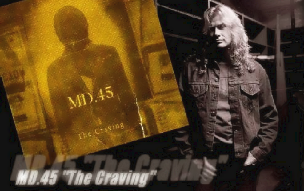 « MD.45 est un groupe éphémère (…). Il n’est actif que durant une année et ne compte qu’un seul album studio, « The Craving » ». Un résumé bref mais tout à fait juste. Définition de MD.45 : projet parallèle initié par Dave Mustaine (MEGADETH) en collaboration avec le chanteur du groupe punk FEAR, Lee Ving. Subtilité, le nom du groupe s’écrit donc MD.45 mais en chiffres romains, 45 s’écrit VL comme Ving Lee, le MD correspondant alors à Mustaine Dave ou encore pour chaque membre du groupe : Mustaine, DeGrasso, Ving et LeMieux. Bien vu ! « The Craving » est sorti le 23 juillet 1996 et sera réédité ensuite le 27 juillet 2004. Un fait important et non simple détail car la réédition verra le chant de Lee être remplacé par celui de Mustaine afin de pallier à la fronde des die-hard fans de MEGADETH et éventuellement, en vendre un peu. C’est cette version qui nous intéresse ici car il est plus intéressant de s’attarder sur l’unique projet parallèle de MegaDave en tant que guitariste et surtout chanteur, lui qui a une voix si caractéristique.