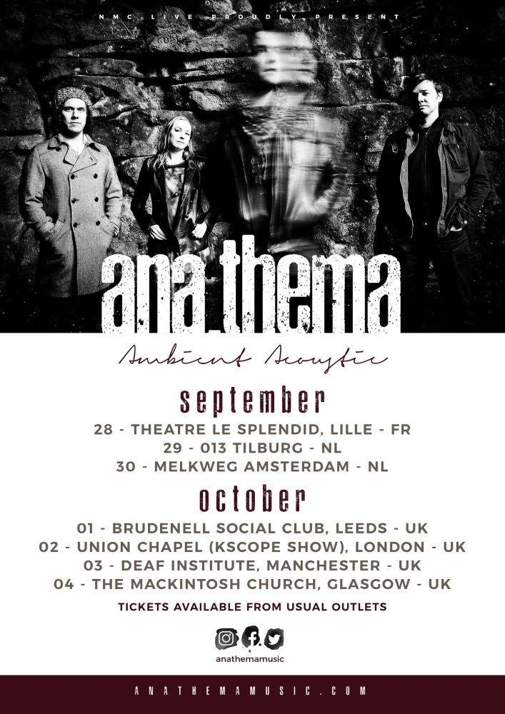 À l'occasion de la sortie de « Internal Landscapes 2008 - 2018 » et du concert anniversaire "10 Years Of Kscope" le 2 octobre à Londres, ANATHEMA fera une série de concerts acoustiques intimes sous le nom de "Ambient Acoustic Tour". ANATHEMA effectuera ces dates avec quatre de ses membres : Daniel & Vincent Cavanagh et Lee & John Douglas. Les groupes qui assureront la premières partie de ces concerts seront annoncés prochainement.