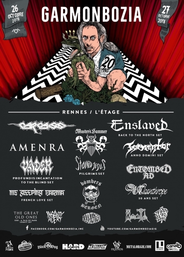 Vingt ans : le bel âge ! Voilà un chiffre et un adage qui vont comme un gant à Garmonbozia et Fred, son heureux fondateur qui nous a consacré un peu de son temps pour prendre le temps de faire le bilan. Un bilan d'étape bien sûr puisque même si de très beaux moments ont déjà émaillé l'existence de l'organisation, nul doute que le meilleur reste à venir ! Comme par exemple le week-end du 26 et 27 octobre à Rennes où Garmonbozia réunira un prestigieux plateau (CARCASS, ENSLAVED, VADER, MISANTHROPE et 13 autres groupes) afin de souffler ses bougies !