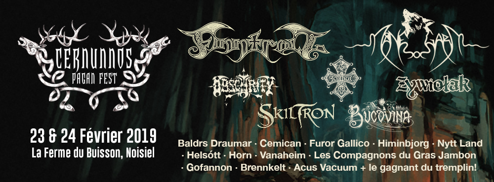 Voici la dernière annonce du Cernunnos Pagan Fest ! Il s'agit de CEMICAN, FUROR GALLICO, HIMINBJORG, BRENNKELT et ACUS VACUUM. Ces groupes viennent donc s'ajouter à la liste déjà très sympathique comprenant, entre autres, FINNTROLL, SKILTRON, NYTT LAND ou SKALD. Le plus pagan des festivals français nous promet de belles rencontres historiques, musicales, culturelles et artistiques.
