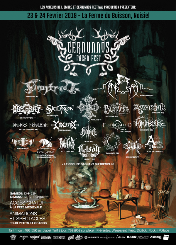 Nous rappelons que le Cernunnos Pagan Fest aura lieu les 23 et 24 février prochains dans ce magnifique lieu qu'est la Ferme du Buisson à Noisiel (Seine-Et-Marne). Amateurs de paganisme, de metal, de médiéval, le Cernunnos est pour vous et pour l'occasion de cette onzième édition du Cernunnos Pagan Fest, HARD FORCE vous permet de remporter 1 pass 2 jours pour ce superbe festival médiévalo-pagano-metal !