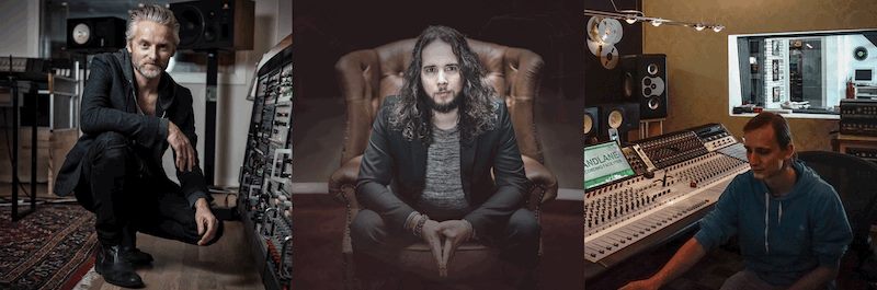 De gauche à droite sur la photo ci-dessus, on retrouve Jacob Hansen (EVERGREY, ABORTED, VOLBEAT, AMARANTHE...) qui s'est chargé du mastering au Danemark dans ses studios, Joost van den Broek (AFTER FOREVER, EPICA, VUUR, AYREON, MAYAN...) à la production et au mixage, enfin, le processus d'enregistrement a été dirigé par Jos Driessen (EPA, AYREON, LUDOWIC...) au studio Sandlane Recording Facilities à Rijen en Hollande .