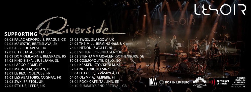 Le groupe originaire de Maastricht LESOIR accompagnera les Polonais RIVERSIDE sur leur tournée européenne. Cette tournée de 23 dates débutera le 06 mars à Prague et se terminera le 05 avril à Tallinn. Ils viendront nous rendre visite à Toulouse le 18 mars au Rex et à Cognac le 19 mars - Les Abattoirs.