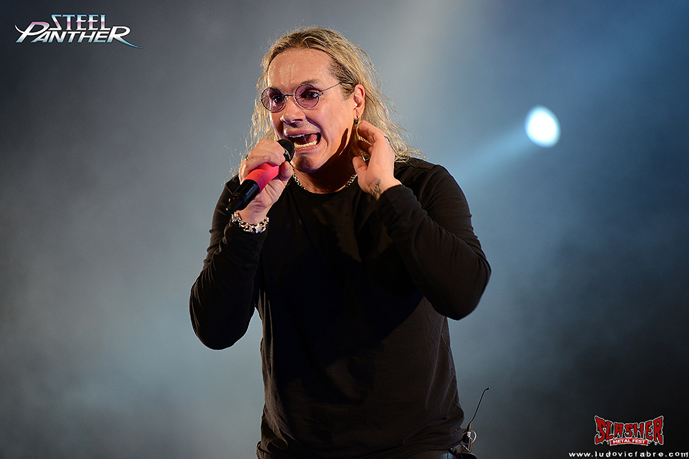 Le plat de résistance, l’événement de la soirée, la grosse tête d’affiche ce sont évidemment les Américains STEEL PANTHER : à mi-chemin entre concert et spectacle comique ! Pour les avoir déjà vus en 2014 au Bikini, je sais que ça parle beaucoup… Mais là, ils se sont surpassés puisqu’à peu près la moitié de leur show est consacré à raconter plein de conneries, donc autant comprendre l’anglais quand même ! Heureusement, c’est méga-drôle. De sacrés performers, c’est certain. Et Michael Starr, un showman comme on n'en fait plus depuis… David Lee Roth ! Ils reprennent d’ailleurs à la perfection le "Just a Gigolo", la version du chanteur de VAN HALEN. Car quand ils ne parlent pas (ou ne jonglent pas avec un chapeau pendant plusieurs minutes !), ça joue grave. Il faut dire que ce sont tous de sacrés musiciens, voilà pourquoi aussi, malgré leurs pitreries, ils sont crédibles quand ils réinterprètent des classiques tels que "Crazy Train" ou "I Don’t Know". Et lorsqu’arrive Michael Starr en Ozzy gâteux, je crois n’avoir jamais autant ri lors d’un concert ! L’imitation, vocale et gestuelle, est parfaite et hilarante : absolument énorme ! Un très très grand moment. lls font ensuite monter sur scène une jeune et jolie demoiselle, Roxanne, pour lui chanter une ballade empreinte de leur grande poésie : « So come on pretty baby, suck my balls all night… » ("Girl From Oklahoma"). Puis, comme à tous leurs concerts, beaucoup d’autres filles, dont certaines très légèrement vêtues, tradition oblige, viendront la rejoindre. Ambiance festive, bonne humeur, excellente musique et, comme LEPROUS, un son impeccable pour eux. Seul petit bémol : pas de rappel, 1h15 c’est en effet un peu court. Mais il vaut mieux un bon concert trop court qu'un mauvais trop long, n’est-ce pas ?