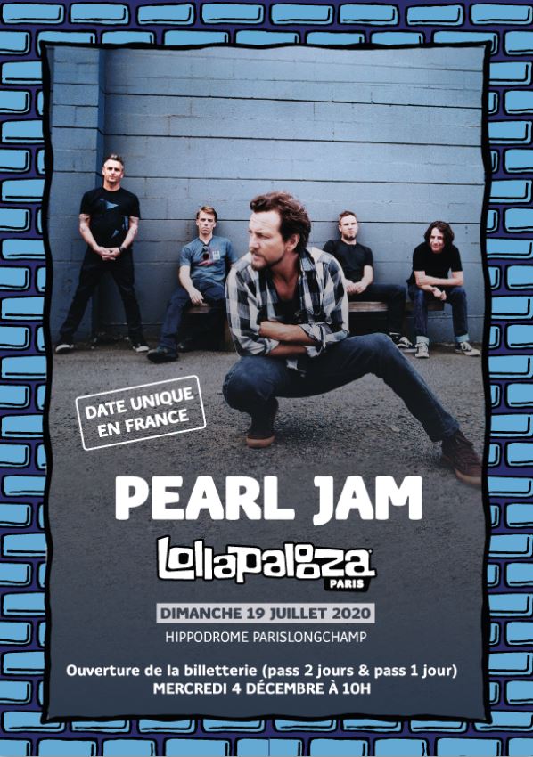 PEARL JAM sera en concert unique en France le 19 juillet dans le cadre du Lollapalooza Paris.