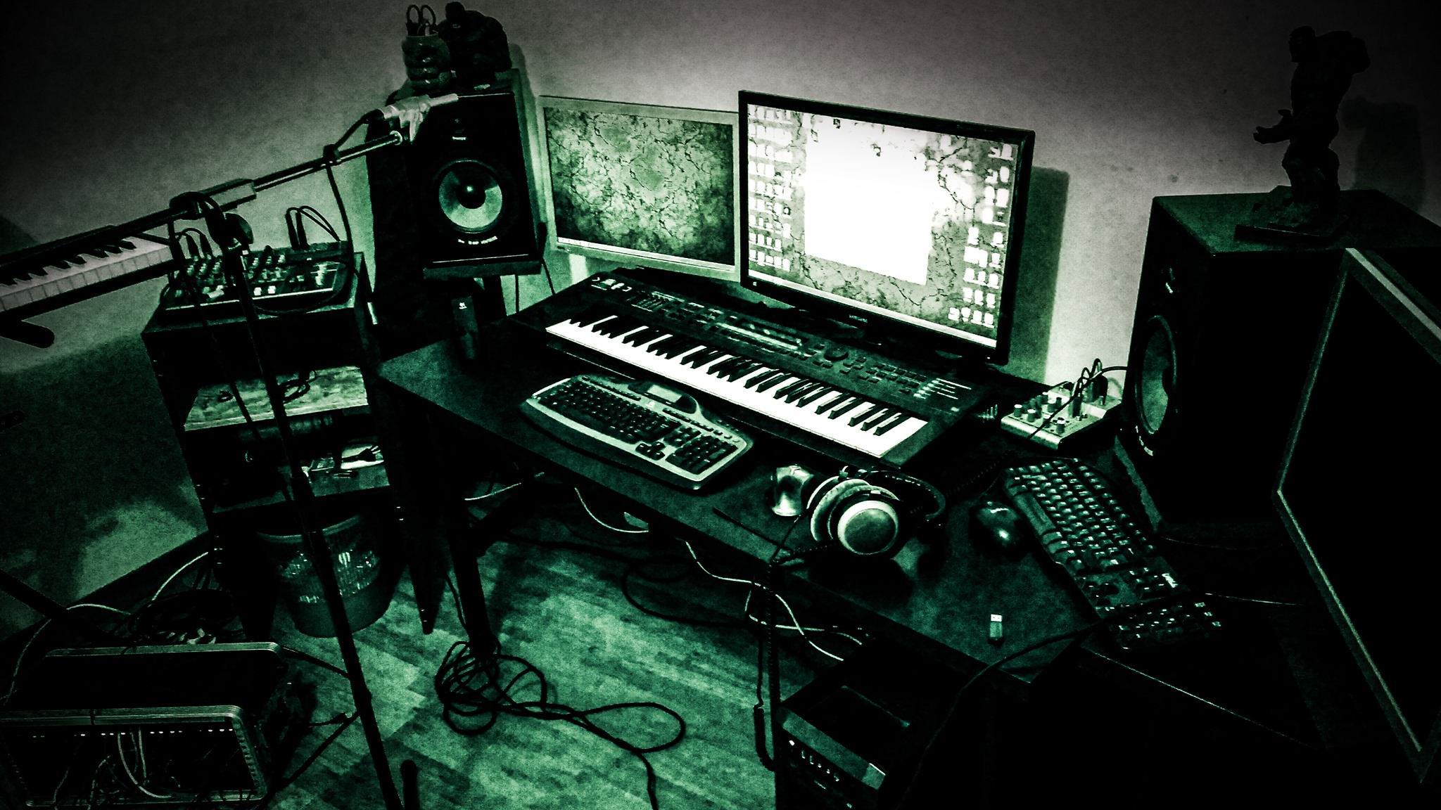 Je dois être une des rares personnes à utiliser Sonar pour composer. La raison est purement historique, avec mon premier synthétiseur j’ai eu une disquette, et sur celle-ci j’avais Cakewalk Sonar. J’ai donc installé ce logiciel sur mon PC de l’époque, et par miracle j’ai été capable de composer de la musique avec les MIDI de ma carte son. Ce PC devait être un premier Pentium, mais j’ai commencé la musique sur Amiga et un quatre pistes. Je n’ai finalement jamais quitté ce logiciel avec lequel j’ai tout appris, même si Sonar n’est pas du tout un standard comme Cubase ou Logic Pro. J’utilise aussi Kontakt en tant que sampleur virtuel. Ma philosophie est que je préfère maîtriser au maximum deux ou trois interfaces plutôt qu’en avoir pléthore, sinon au niveau du flow de composition cela devient trop compliqué. Niveau vidéo, j’utilise After Effects, Premiere et aussi Blender pour l’animation 3D.