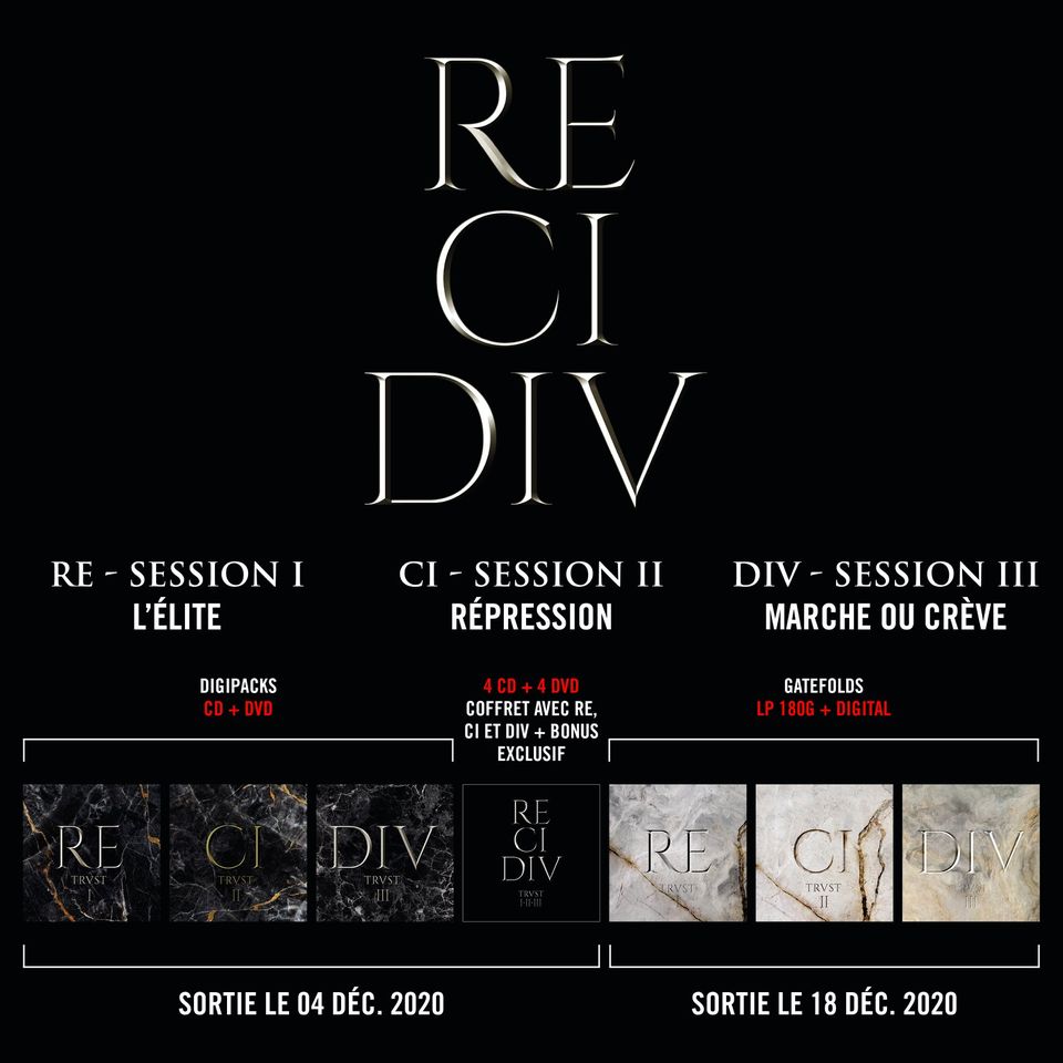 On nous avait promis plus de détails concernant la sortie le 11 décembre de « Recidiv » de TRUST en CD et DVD et le 18 décembre en vinyle, voici donc le communiqué officiel du groupe en la personne de son chanteur Bernie à propos de « L'Elite », « Répression » et « Marche ou Crève », ses 3 premiers albums :