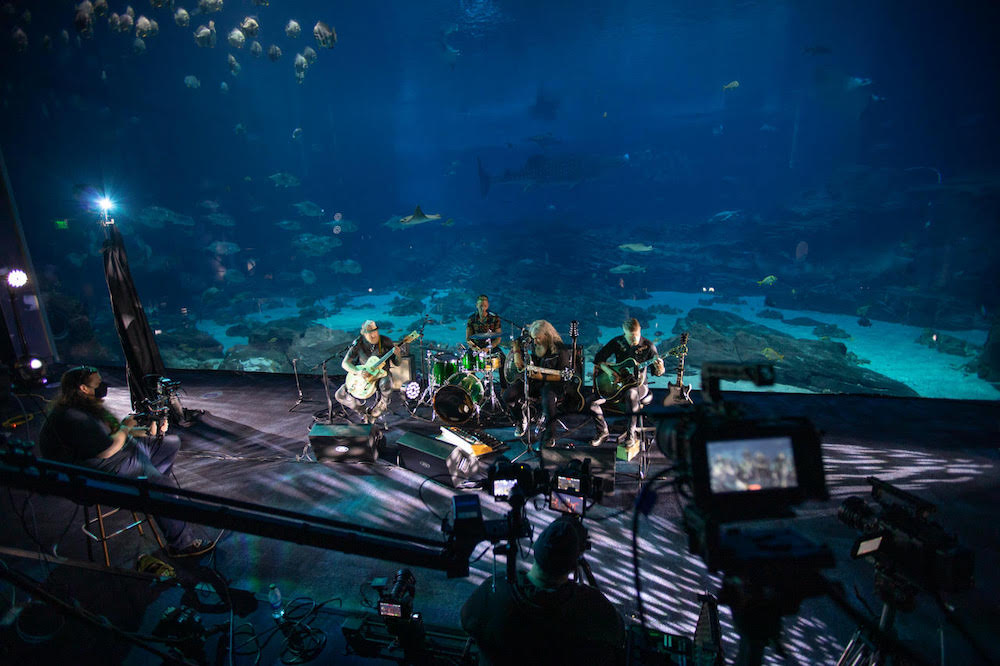 Cela aurait été certainement un tel régal de vivre, en vrai, la représentation de quatre bipèdes au beau milieu des 500 espèces aquatiques évoluant au Georgia Aquarium d’Atlanta : il faut se contenter d’apprécier un MASTODON live sur son écran d’ordinateur ou, au mieux, sur sa télé connectée, car c’est sous forme de séance à domicile en pay-per-view que ce show est proposé.