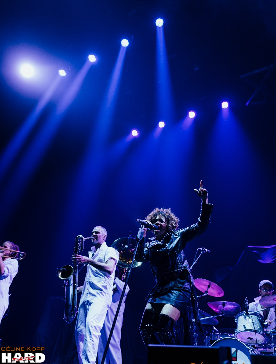 Mais ce qui nous intéresse vraiment se passe ce soir sur scène. Et c’est au collectif BRASS AGAINST qu’incombe la tâche d’ouvrir la soirée. Formation américaine elle aussi, on la connaît surtout pour ses reprises de standards metal et, plus récemment, pour la mauvaise presse qu’a eue le groupe lors d’une date en novembre dernier pendant un festival où sa chanteuse Sophia Urista n’avait trouvé d’autre moyen pour faire le buzz que d’uriner sur un spectateur qu’elle avait fait monter sur scène. Ce soir, point de pipi et on la remerciera pour sa... retenue. Malheureusement, et malgré un accueil poli (on en a connu des pires), la sauce n’a pas vraiment pris en dépit d’une originalité du traitement, à base de cuivres (“brass” en anglais) principalement. Se succèdent donc pendant 45 minutes des extraits de répertoires d’AUDIOSLAVE, RAGE AGAINST THE MACHINE (trois titres sur les neuf du set), LED ZEPPELIN et... TOOL. Surprenant mais ce sont les titres qui auront le mieux fonctionner sur le public (''Stinkfist'' et ''Forty Six & 2''), pas inintéressants de par la tournure que ces chansons ont prises mais pas transcendants pour autant. En cause, des musiciens que l’on ne sent pas à l’aise dans une aussi grande configuration, hésitants dans la scénographie et l’enchaînement des titres, et une chanteuse effacée, usant parfois de poncifs et attitudes lascives qui n’amènent pas d’eau à son moulin. Dommage et sûrement plus appréciable lors d’un concert dans une salle plus intimiste. Pause pipi de 30 minutes ensuite sauf que l’envie pressante des musiciens de TOOL semblant incontrôlable, ils débarquent au bout de vingt minutes à 21h05 sans tambours... ni trompettes. Set-list